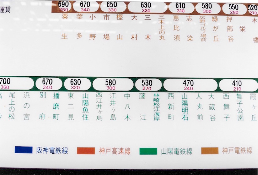 Tokyo Subway Fare Chart |