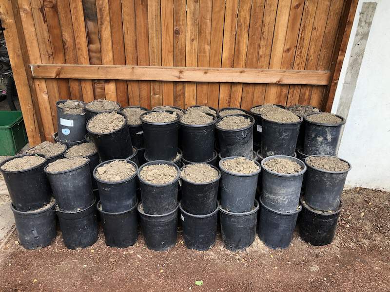How many buckets of soil are there?
