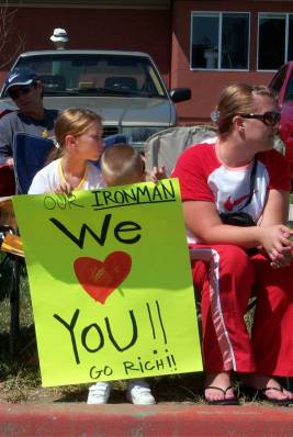 This family clearly has a Dad who is an IRONman! See the little boy behind the yellow sign?